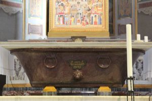 A l’entrée de la 3ème chapelle droite, on distingue une copie d’une table d’autel paléochrétienne (Vème et VIème siècle), en marbre blanc. L’original était employé comme pierre d’évier dans une maison du village. Il se trouve actuellement au musée Calvet d’Avignon.