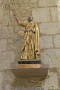 Saint-Barthélémy représenté avec son bras droit écorché – Église Saint Barthélemy de Vaugines