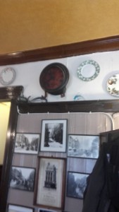 La «Dolphin Tavern », c’est aussi un de ces confortables petits « pubs » anglais typiques, comme on aime les rencontrer au détour d’une rue, avec son bar en bois et ses tabourets bien alignés en rangs d’oignons. Sur les côtés on découvre des sièges et des tables situés dans des encoignures, donnant ainsi une sensation d’isolement douillet dans la chaleur du bois. Tout autour, les murs sont tapissés par une panoplie d’enseignes et de posters publicitaires. Sur des étagères se dresse tout un attirail hétéroclite d’objets anciens. C’est là que j’ai pu repérer une lanterne de tranchée, utilisée par les Tommies durant la Great War.