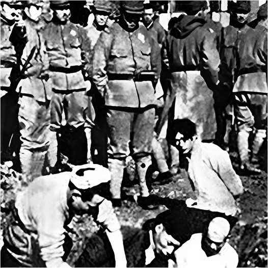 Un groupe d’hommes sur le point d’être enterré vivant