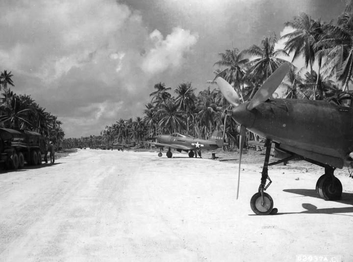 Bell P-39 – Airacobras – garés dans une zone de dispersion sur l’île Makin, îles Gilbert.