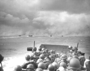 Marines dans les Higgins boats, approchant la plage de débarquement, Saturday, November 20, 1943.