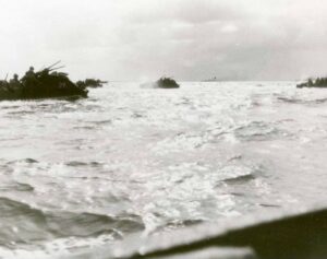 La 2ème division marine a commencé l’opération GALVANIC avec l’invasion de l’atoll de Tarawa tôt le matin, après que près de 3000 tonnes de bombes aient été larguées sur un mile carré de sable et de corail au milieu de l’océan Pacifique.1