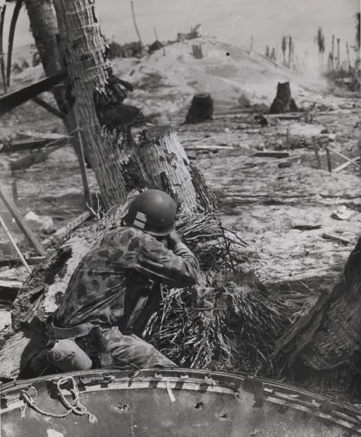 Marine tire sur une position japonaise, Tarawa, novembre 1943