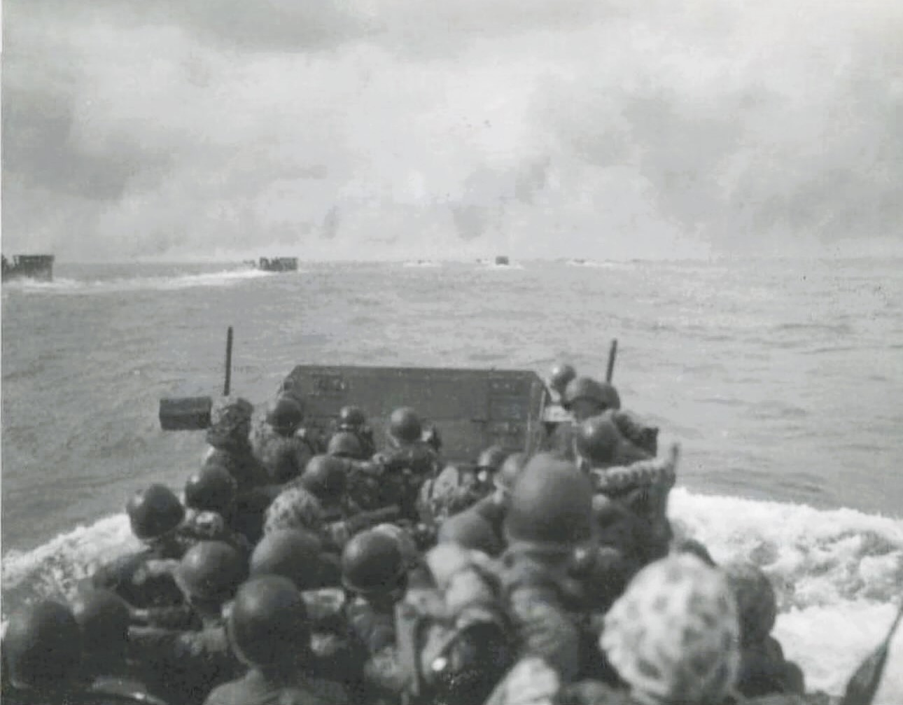 Marines dans les Higgins boats, approchant la plage de débarquement, Saturday, November 20, 1943.1