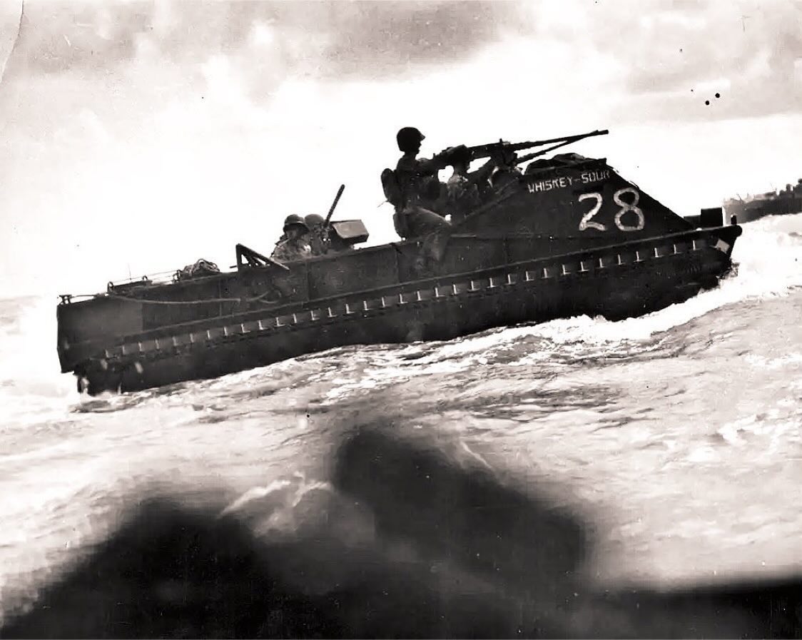Un LVT le « Whiskey-Sour » se dirige vers la plage.