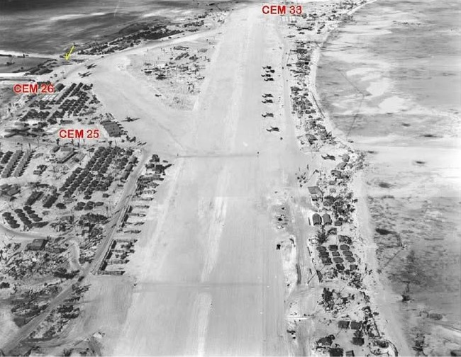 Voici une photo de l’époque de la 2e guerre mondiale de l’île Betio, de l’atoll de Tarawa, des îles Gilbert