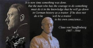 « Il est maintenant temps que quelque chose soit fait. Mais l’homme qui a le courage de faire quelque chose doit le faire en sachant qu’il passera dans l’histoire allemande comme un traître. S’il ne le fait pas, il sera un traître à sa propre conscience… ». Claus Schenk Graf von Stauffenberg