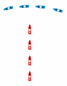 Barrer le T . En bleu les attaquants, en rouge les défenseurs.