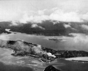 Le débarquement s’effectue sans résistance, mais, presque aussitôt, les Japonais réagissent et bombardent les navires de débarquement et la tête de pont US.