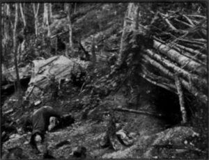 Un bunker japonais et ancien occupant sur la ligne Pt Cruz, janvier 1943.