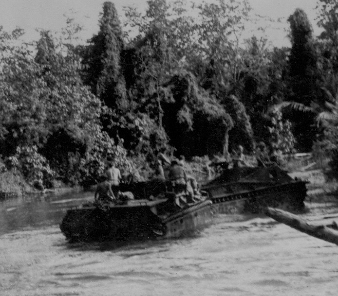 Deux tracteurs amphibies opérant dans la rivière Tenaru, 1942.