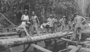 Les ingénieurs de la 25e division d’infanterie construisent un pont sur la rivière Matanikau, en janvier 1943.