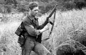Les soldats de la 25e division d’infanterie se dirigeent vers leurs positions d’attaque pour le 10 janvier 1943. La plus grande attaque des États-Unis sur Guadalcanal.