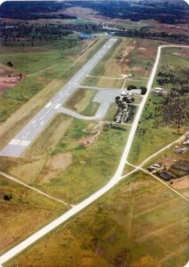 Superbe photo de Henderson Field en 1975. La piste d’origine peut être vue en haut à droite (patch de terre), la rivière Lunga près de la fin de la piste.