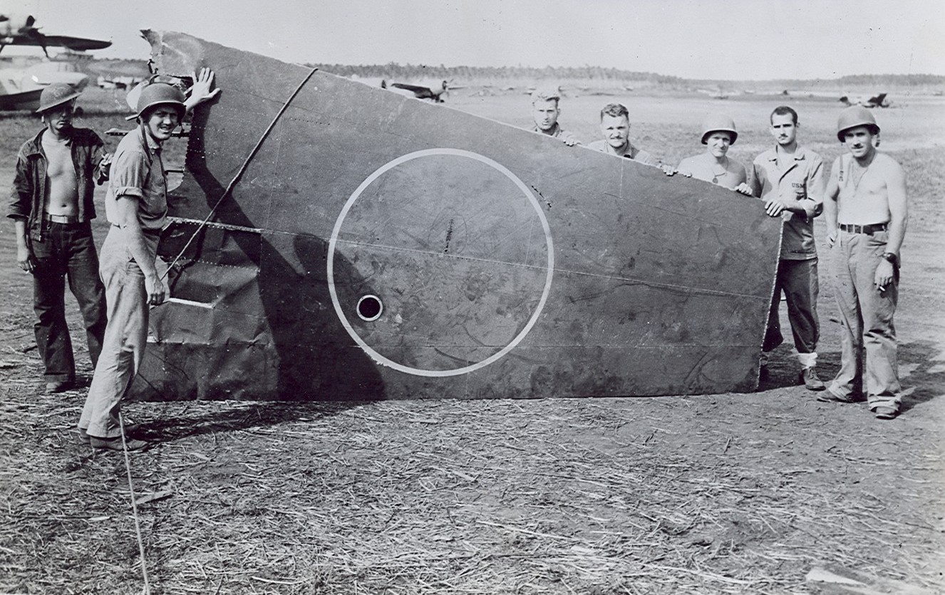 Une aile d’un bombardier japonais sur l’aérodrome de Henderson, septembre-octobre 1942.