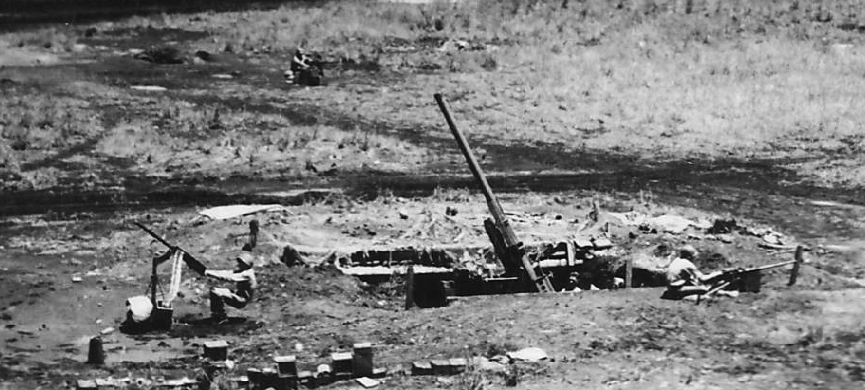 Une position AA de 90mm du 3ème Bataillon de Défense.