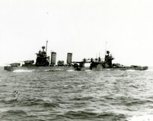 USS Minneapolis (CA-36). En route pour Pearl Harbor pour réparations, vers janvier 1943