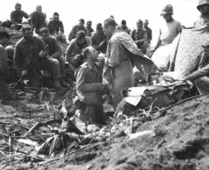 Les Marines reçoivent la communion en 1945, sur Iwo Jima.1