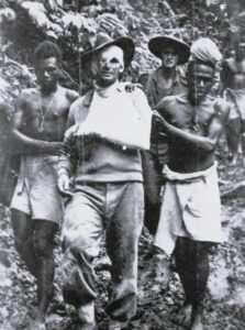 1942-43, Un soldat blessé de l’ANZAC est aidé par des hommes locaux de Nouvelle-Guinée pendant la campagne de Kokoda.