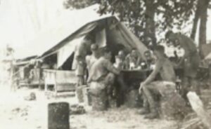 Les hommes du 61e Pioneer Plation campent sur les rives de la baie de Milne en 1942.