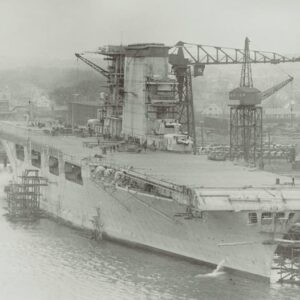 USS Lexington (CV-2) — le légendaire porte-avions américain, vu ici en construction au chantier naval Fore River à Quincy, Massachusetts, au milieu des années 1920. Le légendaire porte-avions américain, vu ici en construction au chantier naval Fore River à Quincy, Massachusetts, au milieu des années 1920. À l’origine, il fut transformé en porte-avions, conformément aux termes du traité naval de Washington de 1922, qui visait à limiter les armements navals parmi les grandes puissances mondiales. Mis en service en 1927, le Lexington et son vaisseau jumeau USS Saratoga (CV-3) devinrent les premiers grands porte-avions de l’histoire de la Marine américaine, et contribuèrent à définir l’ère de l’aviation. Surnommé « Lady Lex », le Lexington déplaçait plus de 36 000 tonnes et transportait jusqu’à 90 avions ; un nombre étonnant pour son temps. Il présentait un long pont d’envol et une énorme structure d’îlot (des innovations qui établirent la norme pour les futurs projets de porte-avions). Son système de propulsion turboélectrique lui donnait à la fois vitesse et fiabilité, tandis que son équipe de chasseurs, de bombardiers et d’avions torpilles l’avait transformée en une base aérienne flottante capable de frapper des centaines de miles plus loin. Pendant la Seconde Guerre mondiale, l’USS Lexington joua un rôle crucial dans le théâtre de la Guerre du Pacifique. Il participa aux premiers raids contre les positions japonaises et à la bataille de la mer de Corail (mai 1942), la première bataille navale de l’histoire menée entièrement par des avions de porte-avions adverses. Malgré des combats acharnés, les avions du Lexington contribuèrent à infliger de lourds dégâts au porte-avions japonais Shōhō, et stoppèrent l’avancée du Japon vers l’Australie. Mais, pendant la bataille, il fut frappé par de multiples bombes et torpilles, ce qui déclencha des explosions massives et des incendies incontrôlables. Après des heures de vaillants efforts pour contrôler les incendies, l’ordre fut donné d’abandonner le navire. Le porte-avion fut sabordé par les destroyers américains pour empêcher sa capture. 260 membres de son équipage disparurent, tandis que plus de 2951 furent sauvés de la mer en feu. Des décennies plus tard, en 2018, son épave fut découverte, remarquablement préservée sur le sol de la mer de Corail, par l’équipage de Paul G. Allen. De ses jours pionniers dans l’aviation navale à sa fin héroïque dans la bataille, l’USS Lexington (CV-2) reste l’un des vaisseaux les plus emblématiques et les plus aimés de l’histoire navale américaine.