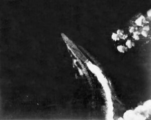 L’USS Yorktown fut touché par une torpille japonaise lancée par un Nakajima B5N