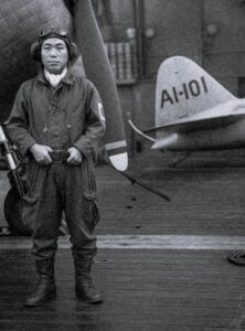 Le lieutenant Zenji Abe – L’un des fougueux pilotes japonais du ciel du Pacifique Sur le pont du porte-avions Akagi, quelque part dans le Pacifique, un jeune officier de la Marine impériale japonaise prend la pose devant son chasseur « Mitsubishi A6M2 Zero » ; il s’appelle Zenji Abe. Le Mitsubishi A6M Zero La photographie date de la fin de 1941 ou du tout début de 1942. Le Japon est alors au sommet de son expansion militaire. Les ponts des porte-avions sont encore calmes, les carlingues des « Zéro » encore indemnes et sans cicatrices, et les équipages ne savent pas encore que la guerre qu’ils débutent sera longue, âpre et terrible. Zenji Abe est l’un de ces pilotes sélectionnés dès l’adolescence, formés dans la discipline absolue, l’endurance, et la conviction que le sacrifice est une forme d’honneur. Le 7 décembre 1941, il participe à la première vague d’assaut contre Pearl Harbor. Il décolle de l’Akagi à l’aube ; l’océan d’un noir d’encre est encore sans fissures. Comme tant d’autres, il croit alors frapper pour assurer la survie de son pays dans un monde qui, pensait-on au Japon, a décidé de le faire disparaître. Le « Zero » qu’il pilote est l’un des avions les plus redoutés de la guerre. Léger, d’une maniabilité exceptionnelle, presque divin dans ses mouvements, mais aussi fragile, dépourvu de cuirasse, conçu selon une logique d’agilité totale, mais au prix de la protection du pilote. Une philosophie de combat où l’homme et la machine doivent ne plus faire qu’un. Pour Zenji Abe comme pour tant de pilotes japonais, la guerre sera une succession d’aventures de plus en plus périlleuses, d’îles perdues au prix de lourdes pertes, de ponts d’envol embrasés, et de camarades qui ne reviendront plus… Leur sacrifice, présenté à l’époque comme l’ultime expression de la loyauté envers l’Empereur et la patrie, reste aujourd’hui un symbole tragique : celui d’une génération sacrifiée dans une guerre perdue d’avance. Après Midway, après Guadalcanal, après la longue bataille du Pacifique, les grands porte-avions qui emmenaient ces hommes vers le ciel seront coulés ou incendiés les uns après les autres. L’Akagi, le porte-avions de cette photographie, sombrera en flammes en juin 1942. Le porte-avions Akagi coulé lors de la bataille de Midway en 1942. Zenji Abe survivra à la guerre… Il deviendra plus tard un des rares anciens pilotes de Pearl Harbor à témoigner publiquement, cherchant à comprendre, et non à glorifier. En 1991, lors d’une cérémonie à Hawaii, il rencontrera des vétérans américains. Certains lui refuseront la poignée de main. D’autres l’accepteront. Et il dira simplement : « La guerre ne devrait jamais arriver. Nous étions jeunes. Nous avons fait ce que l’on nous a demandé. Ce que j’ai appris, c’est qu’il faut parler avant qu’il ne soit trop tard. » Le visage que nous voyons sur la photo n’est pas celui d’un symbole. C’est celui d’un homme, à l’aube d’une guerre qui allait dévorer une génération entière de jeunes gens.