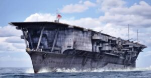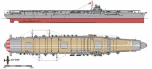 De gauche à droite : le Shinano, le Taiho, l’Akagi, le Zuikaku, l’Hiryu, le Junyo, le Taiyo, le Hosho