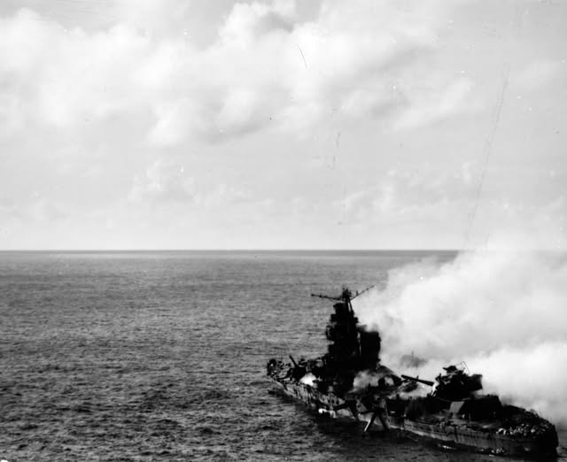 Bataille de Midway juin 1942- Un croiseur lourd japonais de la classe Mogami après avoir été bombardé par un avion basé sur un porte-avions américain