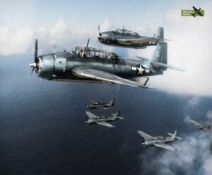 Formation de TBM Avenger en vol serré au-dessus du Pacifique