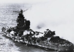 Le croiseur lourd japonais Mikuma a été gravement endommagé et coulé pendant la bataille de Midway.