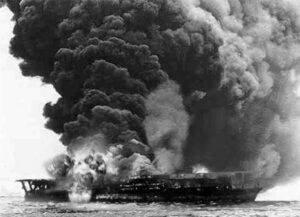 Le porte-avions Kaga en flammes durant la bataille de Midway, Juin 4, 1942