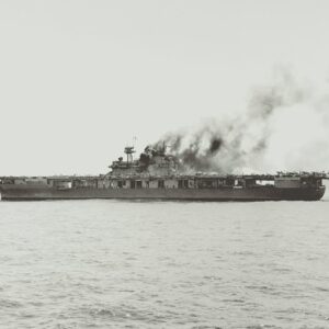 L’USS Yorktown (CV-5), a subi de lourds dégâts à la bataille de Midway en juin 1942
