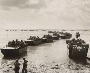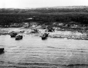 Le 24 juillet 1944, 415 véhicules amphibies transportant la 2ème et la 4ème Division de Marines débarquent au nord de l’île. En parallèle, au sud de l’île, une attaque de diversion près de « Tinian Town », a pour conséquence de séparer les défenseurs japonais en deux groupes dans les premières heures de l’assaut.
