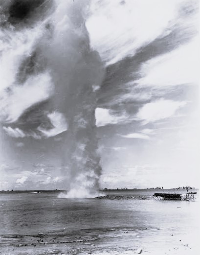 Des Seabees dynamitent Coral bottom sur la jetée à Ulithi, 6th Special N.C.B. Octobre 1944. 1