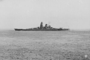 Le cuirassé japonais Musashi quitte Brunei, Bornéo, en 1944, peut-être le 22 octobre, lorsqu’il part pour participer à la bataille du golfe Leyte.