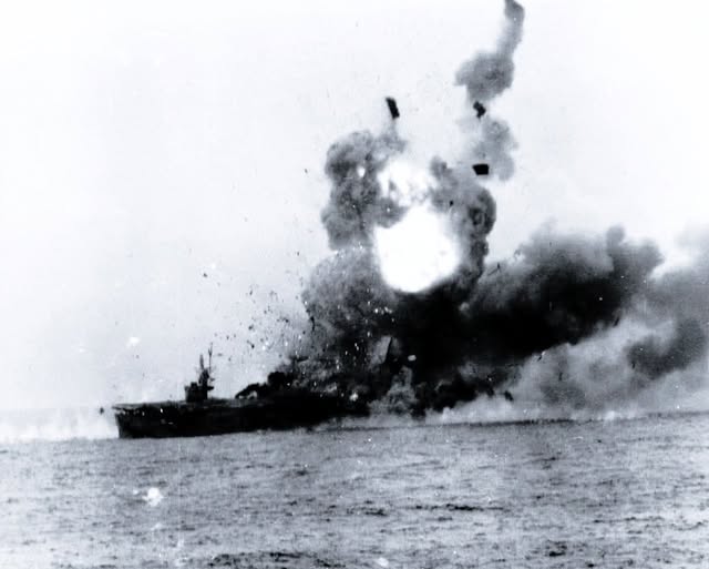 L’USS St. Lo (CVE-63) explose après un coup kamikaze