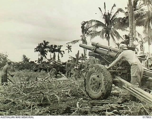 Obusiers M2A1 de l’armée américaine pendant la campagne des Philippines, novembre 1944