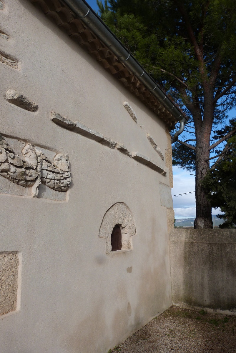 Vestiges d’un mausolée d’époque romaine (base moulurée, fragments de frise à guirlande, et masques de comédie). (5)