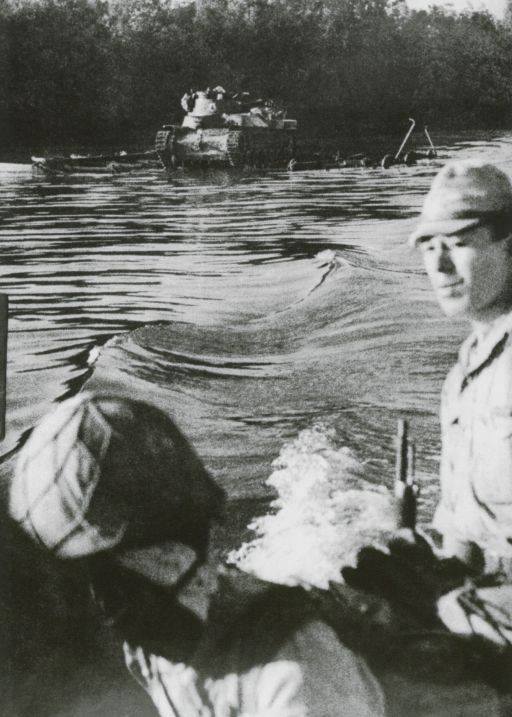 forces japonaises lors du débarquement à marée basse sur l’île de Singapour. 10 février 1942.