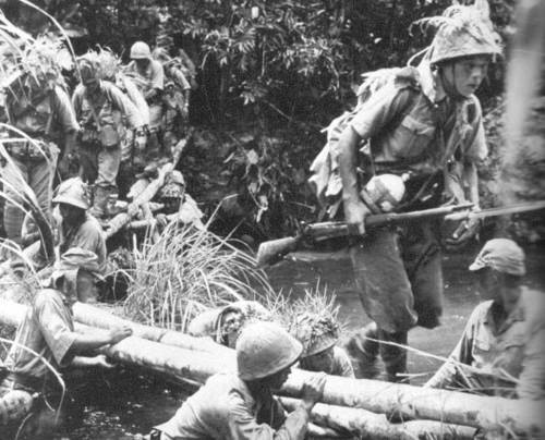 Les troupes japonaises se déplacent à travers la jungle malaise, janvier 1942