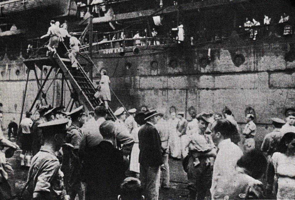 L’évacuation des civils de Singapour sur l’un des derniers convois organisés pour partir. Port de Singapour, 4 février 1942.