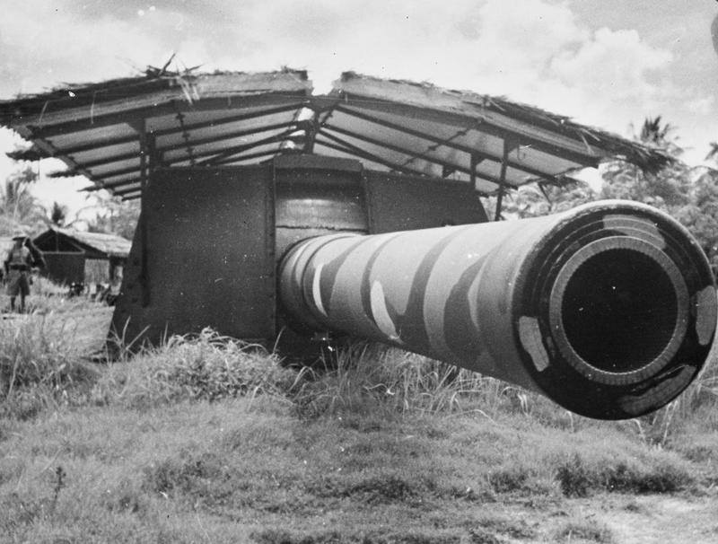 Un canon de défense Johore No.3 de 15 pouces, Singapour, novembre 1941