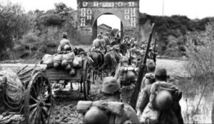 L’armée japonaise a attaqué et occupé une forteresse dans le district de Jinghai à Tianjin. Sur la photo, on voit bien que le transport des fournitures était surtout effectué par des chevaux