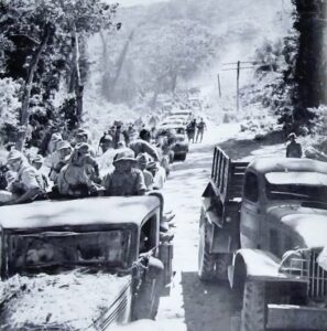 Un convoi japonais passe par des prisonniers de guerre américains et philippins