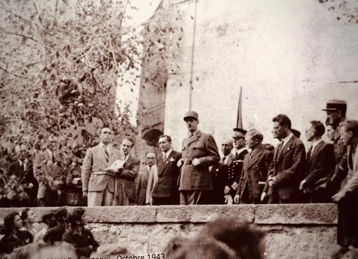 Sartène, venue du Général de Gaulle, après la libération de la Corse. Photo Christophe Mondoloni