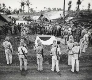 Les Marines enterrent le général japonais Yoshitsugu Saitō, après que son corps ait été retrouvé dans une grotte sur Saipan – 13 juillet 1944