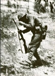 Un soldat américain frappé par des éclats de mortier japonais à Saipan, juillet 1944