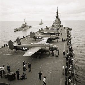 L’homme de la situation, celui auquel on fit appel, était le lieutenant-colonel Doolittle, un aviateur exceptionnel, hors du commun… Son idée un peu folle fut de faire décoller depuis un porte-avions des bombardiers « B25 Mitchell ». Puisque l’on ne pouvait pas bombarder le Japon directement par les airs (parce que trop éloigné), alors il fallait emmener, grâce aux porte-avions, les bombardiers sur place.